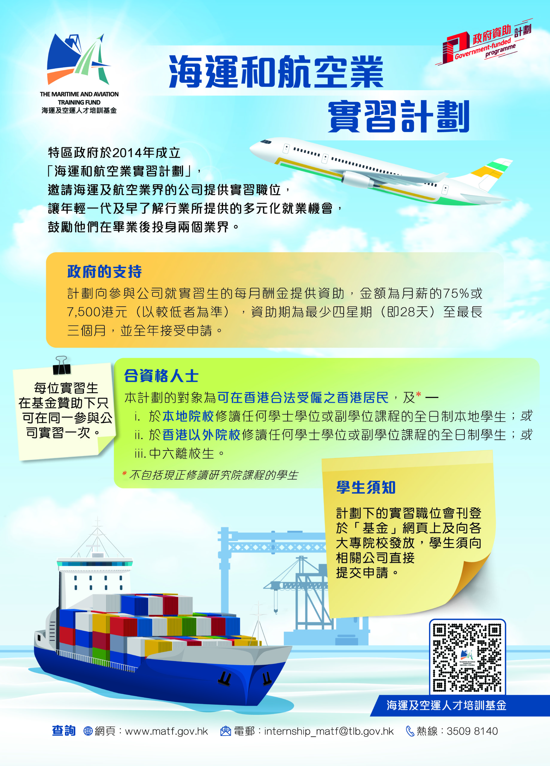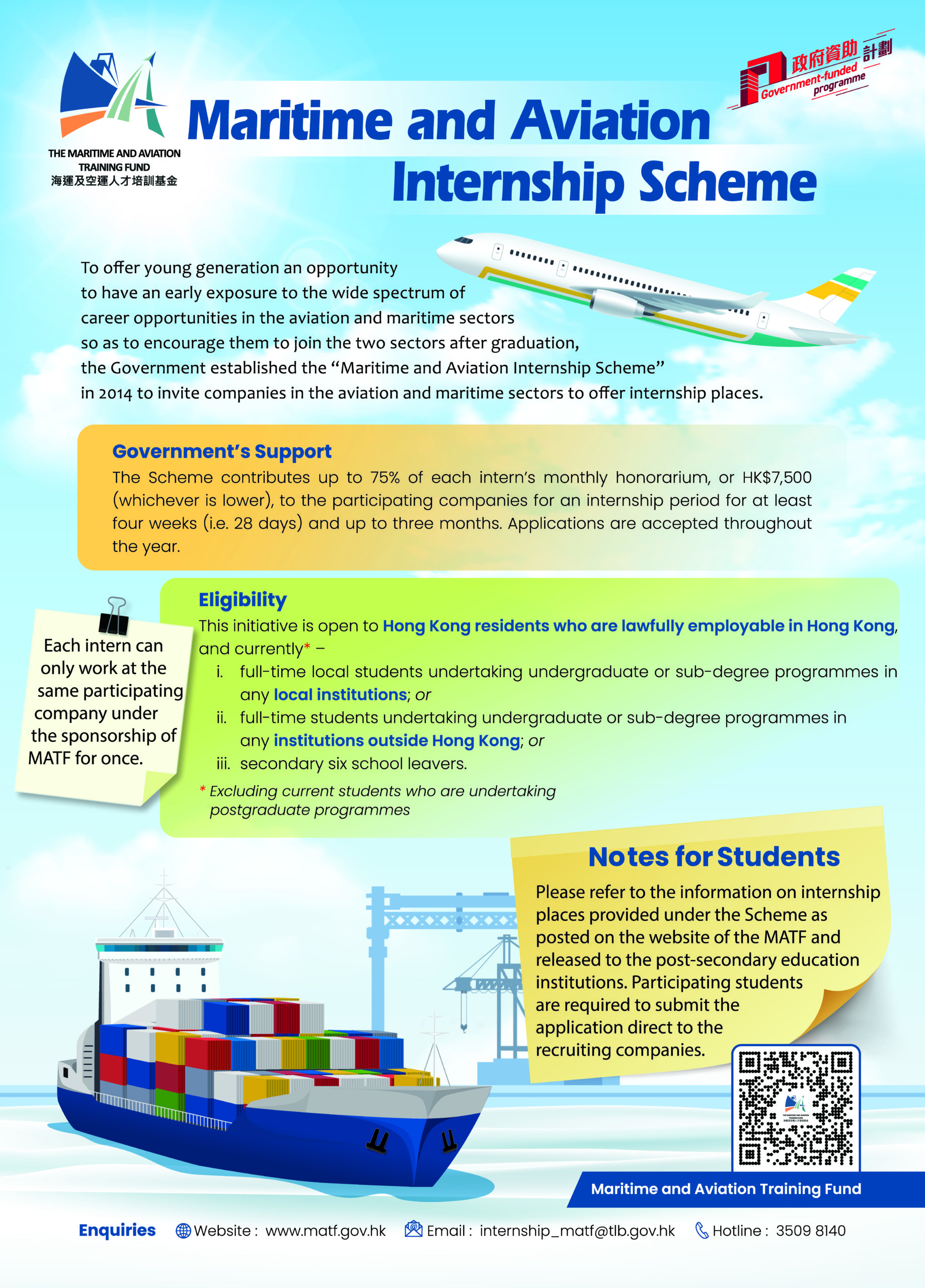 The registration of the Maritime and Aviation Internship Scheme (Maritime) (the Internship Scheme) under the Maritime and Aviation Training Fund (MATF) of the Transport and Logistics Bureau for Year 2026-27 by companies will commence in March 2026. Companies in the local maritime sector are invited to register for the internship positions under the Internship Scheme.