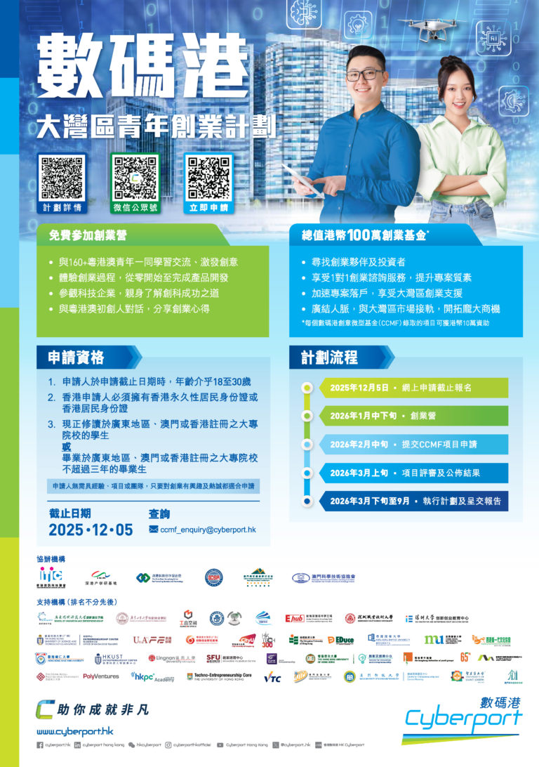 數碼港大灣區青年創業計劃